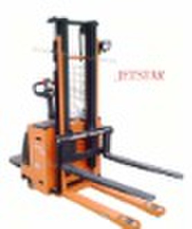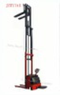 Electric Stacker |Electric Forklift | Electric Pallet Stacker These trucks have following features and benefits,human system engineering design,continusously variable driver,wide view mast assembly made of Germany steel,maximum lifting height 6 meters,with optional standing plat. Large power separately excited motorHowell type stepless adjusting speedEmergency reverse functionBraking at no starting functionRegenerative braking functionOptional speed & working modesPressure compensation functionLow pressure alarming function Specification 1KG=2.2LB 1INCH=25.4MM ModelUnitJST-CDD 10JST-CDD 12JST-CDD 15Rated load capacitykg100012001500Load centermm600600600PowerTractive-type BatteryManipulationTramp/Standing steer type(with standing pateform)Std.type lifting height (max)mm1600/2500/2900/3300/5500Fork min. heightmm≤90≤90≤90Turning radiusmm142514251650Fork lengthmm360360340Axis spacemm122812281450Overall lengthmm180018001988Overall widthmm8508501000Overall heightmm1975/1785/1985/2185Std.max lifting heightmm1975/2990/3390/3790/5940Standard forkmm1150*160*701150*180*701150*180*70Fork overall widthmm570570570/680Fork individual widthmm250210320Traveling speedkm/h4/64/64/6Lifting speedmm/s80/13080/13080/130Lowering speedmm/s110/90110/90110/90Gradient%5/85/85/8Braking typeElectromagnetic brakingDriving wheel dimensionmmΦ250*100Φ250*100Φ250*100Loading wheel dimensionmmΦ80*70*2Φ80*70*2Φ80*70*2Balance wheel dimensionmmΦ156*50Φ156*50Φ156*75Driving motorkw1.21.21.2Lifting motorkw2.22.22.2Battery(Voltage/Capacity)V/Ah24/16524/16524/210Controling typeSeries excited electric controller,stepless adjusting speedWeightkg650/770/790/810860/880/900